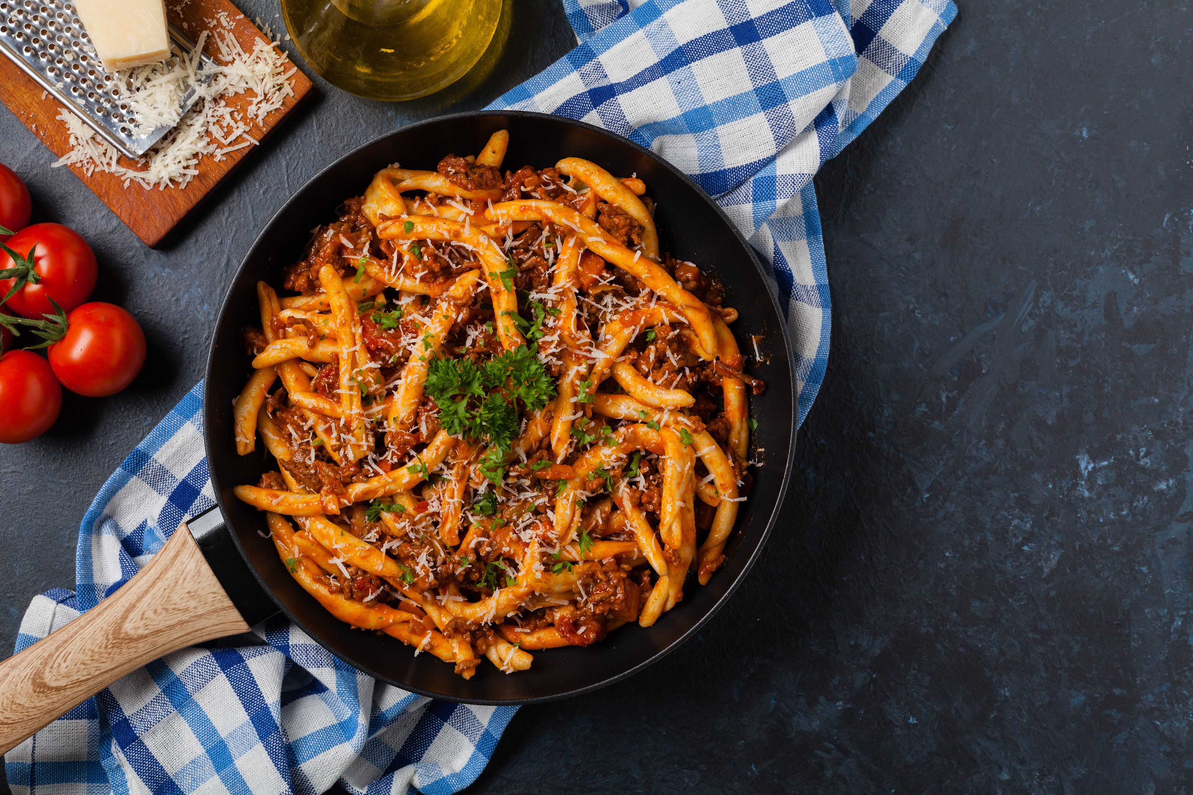 Preparare il ragù come preferite. A fine cottura spolverare con una generosa dose di parconio.